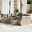 Ta vrtna sedežna garnitura je popoln dodatek za vaše dvorišče, teraso ali verando, saj zagotavlja udoben in vabljiv prostor za klepet z družino in prijatelji ali preprosto za sprostitev in uživanje na prostem. Trpežen material: PE ratan, znan tudi kot poli ratan, je močan sintetični material, ki ne potrebuje vzdrževanja in je videti kot naravni ratan. Je lahek, enostaven za čiščenje in se zaradi svoje vzdržljivosti in odpornosti na vremenske vplive pogosto uporablja za zunanje pohištvo.Funkcija shranjevanja z vodoodporno vrečo: Vsak vrtni sedež ima pod sedežem prostor za shranjevanje, opremljen z vodoodporno vrečo za shranjevanje blazin, igrač in drugih predmetov. Notranja torba ima zgornji pokrov in jo je mogoče varno pritrditi na sedež s kavljem in zanko za večjo stabilnost.Nastavljiva mizna plošča: Z dvigom mizne plošče lahko mizo povišate, s čimer se zunanja klubska mizica spremeni v jedilno mizo. Popolna je za sprejemanje gostov ali uživanje v obrokih na prostem.Prevleko je mogoče odstraniti in oprati: Te sedežne blazine imajo odstranljive prevleke za lažje pranje in vzdrževanje.Robusten in stabilen okvir: Jeklen okvir s prašnim premazom je močan, stabilen, trpežen ter odporen na korozijo in slabe vremenske razmere, kar zagotavlja dolgotrajno delovanje. Dobro je vedeti:Če želite, da vaše zunanje pohištvo ostane lepo, vam priporočamo, da ga zaščitite z vodoodporno prevleko.Dimenzije vodoodporne vreče: 55 x 53 x 34 cm (D x Š x V)Največja dovoljena teža (na sedež): 110 kgUV-odpornoPlastične nastavljive nogePotrebno sestavljanje: DaSrednji sedež:Barva: BežMaterial: PE ratan, jeklen okvir s prašnim premazomDimenzije: 55 x 62 x 69 cm (Š x G x V)Velikost sedeža: 55 x 55 cm (Š x G)Višina sedeža od tal (brez blazine): 37 cmKotni sedež:Barva: BežMaterial: PE ratan, jeklen okvir s prašnim premazomDimenzije: 62 x 62 x 69 cm (Š x G x V)Velikost sedeža: 55 x 55 cm (Š x G)Višina sedeža od tal (brez blazine): 37 cmKavč z naslonjali za roke:Barva: BežMaterial: PE ratan, jeklen okvir s prašnim premazomDimenzije: 71 x 62 x 69 cm (Š x G x V)Velikost sedeža: 55 x 55 cm (Š x G)Višina sedeža od tal (brez blazine): 37 cmVišina naslonjal za roke od tal: 55 cmMiza:Barva: BežMaterial: PE ratan, jeklo s prašnim premazom, kaljeno stekloDimenzije: 100 x 55 x 44/73 cm (D x Š x V)Blazina:Barva: Svetlo sivaMaterial prevleke: Tkanina (100 % poliester)Polnilo sedežne blazine: PenaPolnilo hrbtne blazine: bombažna vlaknaDimenzije sedežne blazine: 55 x 55 x 3 cm (Š x G x D)Dimenzije hrbtne blazine: 55 x 45 x 13 cm (D x Š x D)Paket vsebuje:4 x Srednji kavč s funkcijo shranjevanja z vodoodporno vrečo2 x Kotni kavč s funkcijo shranjevanja z vodoodporno vrečo2 x Kavč s funkcijo shranjevanja z vodoodporno vrečo1 x Miza10 x Blazina za hrbet8 x Sedežna blazina s snemljivo in pralno prevleko 3326610