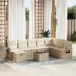 Ta vrtna sedežna garnitura je popoln dodatek za vaše dvorišče, teraso ali verando, saj zagotavlja udoben in vabljiv prostor za klepet z družino in prijatelji ali preprosto za sprostitev in uživanje na prostem. Trpežen material: PE ratan, znan tudi kot poli ratan, je močan sintetični material, ki ne potrebuje vzdrževanja in je videti kot naravni ratan. Je lahek, enostaven za čiščenje in se zaradi svoje vzdržljivosti in odpornosti na vremenske vplive pogosto uporablja za zunanje pohištvo.Funkcija shranjevanja z vodoodporno torbo: Vrtno pohištvo ima pod sedežem prostor za shranjevanje, opremljen z vodoodporno torbo za shranjevanje blazin, igrač in drugih stvari. Notranjo torbo je mogoče varno pritrditi na zunanje pohištvo s kavljem in zanko za večjo stabilnost.Vsestranski stolček za noge: Stolček je vsestransko uporaben, saj služi kot udoben naslon za noge, ko ležite na kavču, ali kot dodaten sedež na vrtu.Prevleko je mogoče odstraniti in oprati: Te sedežne blazine imajo odstranljive prevleke za lažje pranje in vzdrževanje.Modularna zasnova: Ta komplet zunanjega pohištva ima modularno zasnovo, zaradi česar je popolnoma prilagodljiv in enostaven za premikanje, tako da lahko zunanjo garnituro postavite kakor koli želite. Dobro je vedeti:Če želite, da vaše zunanje pohištvo ostane lepo, vam priporočamo, da ga zaščitite z vodoodporno prevleko.Dimenzije vodoodporne vreče: 55 x 53 x 34 cm (D x Š x V)Največja dovoljena teža (na sedež): 110 kgUV-odpornoPlastične nastavljive nogePotrebno sestavljanje: DaKavč z naslonjali za roke:Barva: BežMaterial: PE ratan, jeklen okvir s prašnim premazomDimenzije: 62 x 62 x 69 cm (Š x G x V)Velikost sedeža: 55 x 55 cm (Š x G)Višina sedeža od tal (brez blazine): 37 cmVišina naslonjal za roke od tal: 55 cmŠirina naslonjala za roke: 6 cmVelikost stranske mizice: 25 x 23 cm (D x Š)Kotni sedež:Barva: BežMaterial: PE ratan, jeklen okvir s prašnim premazomDimenzije: 62 x 62 x 69 cm (Š x G x V)Velikost sedeža: 55 x 55 cm (Š x G)Višina sedeža od tal (brez blazine): 37 cmSrednji sedež:Barva: BežMaterial: PE ratan, jeklen okvir s prašnim premazomDimenzije: 55 x 62 x 69 cm (Š x G x V)Velikost sedeža: 55 x 55 cm (Š x G)Višina sedeža od tal (brez blazine): 37 cmStolček za noge:Barva: BežMaterial: PE ratan, jeklen okvir s prašnim premazomDimenzije: 55 x 55 x 37 cm (Š x G x V)Vrtna miza:Barva: BežMaterial: PE ratan, jeklo s prašnim premazom, kaljeno stekloDimenzije: 55 x 55 x 37 cm (Š x G x V)Blazina:Barva: Kremno belaMaterial prevleke: Tkanina (100 % poliester)Polnilo sedežne blazine: PenaPolnilo hrbtne blazine: bombažna vlaknaDimenzije sedežne blazine: 55 x 55 x 3 cm (Š x G x D)Dimenzije hrbtne blazine: 55 x 45 x 13 cm (D x Š x D) Paket vsebuje:2 x Kavč s funkcijo shranjevanja z vodoodporno vrečo1 x Kotni kavč s funkcijo shranjevanja z vodoodporno vrečo4 x Srednji kavč s funkcijo shranjevanja z vodoodporno vrečo1 x Stolček s funkcijo shranjevanja1 x Vrtna miza8 x Blazina za hrbet8 x Sedežna blazina s snemljivo in pralno prevleko 3325544