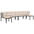 Ta vrtna sedežna garnitura je popoln dodatek za vaše dvorišče, teraso ali verando, saj zagotavlja udoben in vabljiv prostor za klepet z družino in prijatelji ali preprosto za sprostitev in uživanje na prostem. Robusten in stabilen okvir: Jeklen okvir s prašnim premazom je močan, stabilen, trpežen ter odporen na korozijo in slabe vremenske razmere, kar zagotavlja dolgotrajno delovanje.Priročna stranska mizica: To zunanje pohištvo ima stransko mizico, ki zagotavlja priročen prostor za shranjevanje potrebščin na dosegu roke.Udobno sedenje: To zunanje pohištvo z debelo oblazinjenimi blazinami zagotavlja udobno sedenje. Prevleko je mogoče odstraniti in oprati: Te sedežne blazine imajo odstranljive prevleke za lažje pranje in vzdrževanje.Modularna zasnova: Ta komplet zunanjega pohištva ima modularno zasnovo, zaradi česar je popolnoma prilagodljiv in enostaven za premikanje, tako da lahko zunanjo garnituro postavite kakor koli želite. Dobro je vedeti:Če želite, da vaše zunanje pohištvo ostane lepo, vam priporočamo, da ga zaščitite z vodoodporno prevleko.Maksimalna nosilnost (na sedež): 110 kgPotrebno sestavljanje: DaVrtna klop (s 3 nasloni):Barva: ČrnaMaterial: Jeklo s prašnim premazomDimenzije: 118 x 63 x 78 cm (Š x G x V)Velikost sedeža: 110 x 55 cm (Š x G)Višina sedeža, merjena od tal: 39,5 cmVrtna klop s stransko mizico:Barva: ČrnaMaterial: Jeklo s prašnim premazomDimenzije: 110 x 63 x 78 cm (Š x G x V)Velikost sedeža: 80 x 50 cm (Š x G)Velikost stranske mizice: 30 x 55 cm (Š x G)Višina sedeža, merjena od tal: 39,5 cmBlazina:Barva: TaupeMaterial prevleke: Tkanina (100 % poliester)Polnilo sedežne blazine: PenaPolnilo hrbtne blazine: PP bombažDimenzije sedežne blazine: 80/110x 55 x 6 cm (Š x G x D)Dimenzije blazine za hrbet: 50 x 43 x 12 cm (D x Š x D)Paket vsebuje:4 x Vrtna klop4 x Blazina za hrbet8 x Sedežna blazina s snemljivo in pralno prevleko 3283669