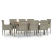 vidaXL Vrtna jedilna garnitura 9-delna z blazinami siv poli ratan