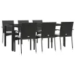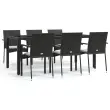 vidaXL Vrtna jedilna garnitura 7-delna z blazinami črna poli ratan