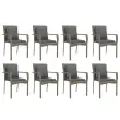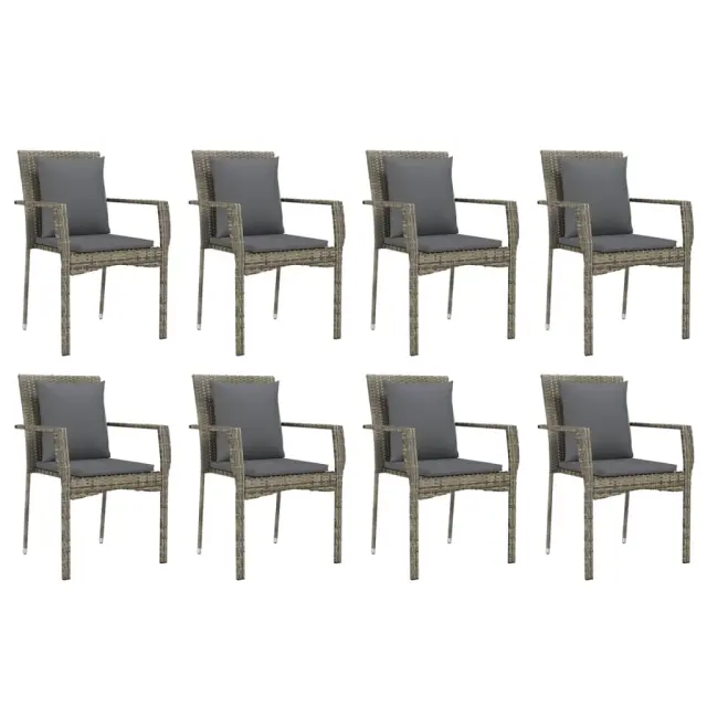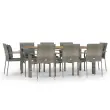 vidaXL Vrtna jedilna garnitura 9-delna z blazinami siv poli ratan