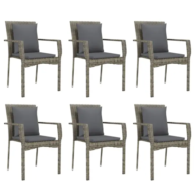 vidaXL Vrtna jedilna garnitura 7-delna z blazinami siv poli ratan