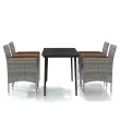 vidaXL Vrtna jedilna garnitura 5-delna z blazinami siva in črna