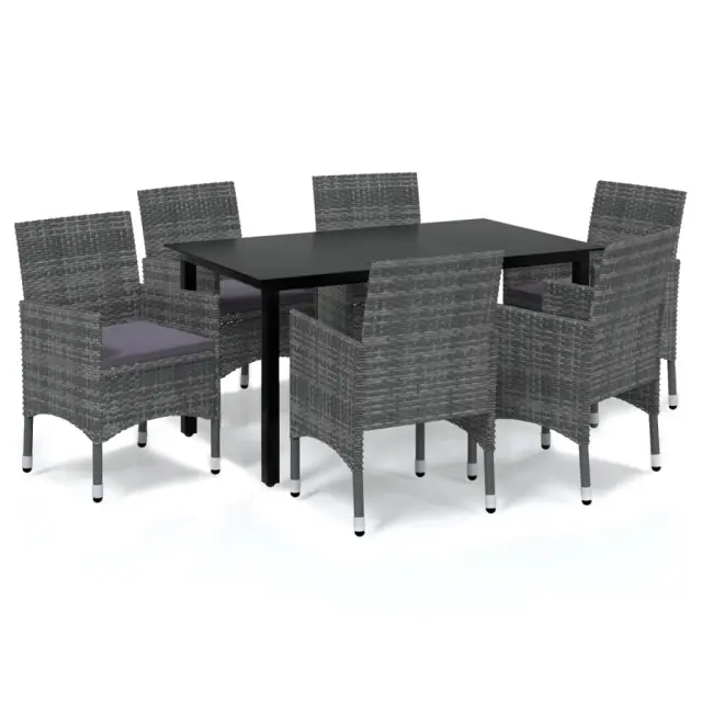 vidaXL Vrtna jedilna garnitura 5-delna z blazinami poli ratan siva