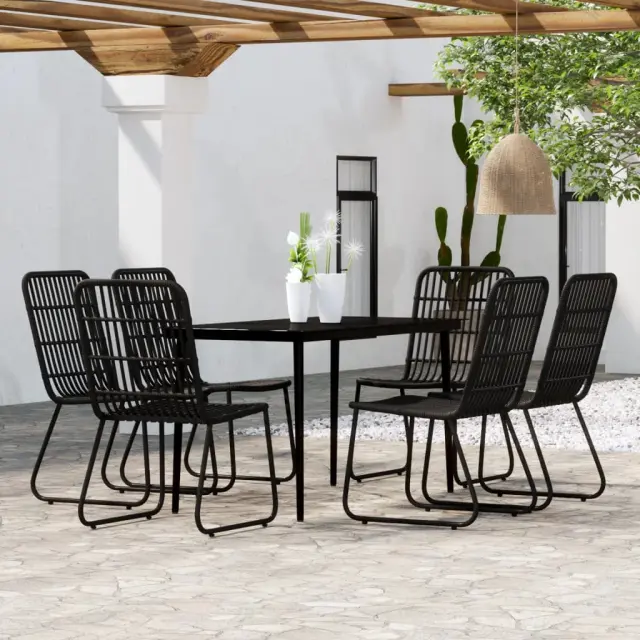 vidaXL Vrtna jedilna garnitura 7-delna črna