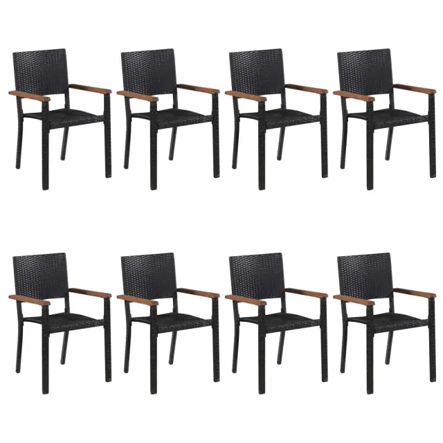 S to vrtno jedilno garnituro lahko ustvarite privlačen in prijeten zunanji prostor! Jedilna miza je izdelana iz trdnega akacijevega lesa z oljnim premazom, zato je stabilna, vzdržljiva in preprosta za vzdrževanje. Jedilni stoli imajo prašno premazan jeklen okvir, ki je oblečen v vremensko odporen PE ratan, zato so trdni in preprosti za čiščenje. Pomembna opomba: Če želite, da vam bo jedilna garnitura služila še dolgo, priporočamo, da jo v primeru dežja, snega ali zmrzali pokrijete.Miza:Material: Trden akacijev les z oljnim premazomDimenzije: 200 x 90 x 74 cm (D x Š x V)Stol:Barva: Rjava in črnaMaterial: PE (polietilen) ratan, jeklo s prašnim premazom, trden akacijev lesDimenzije: 56 x 55 x 88 cm (Š x G x V)Širina sedeža: 46 cmGlobina sedeža: 46 cmVišina sedeža, merjena od tal: 46 cmVišina naslonjala za roke od tal: 65 cmPotrebno sestavljanje: DaPaket vsebuje:1 x Miza8 x Stol 3067902