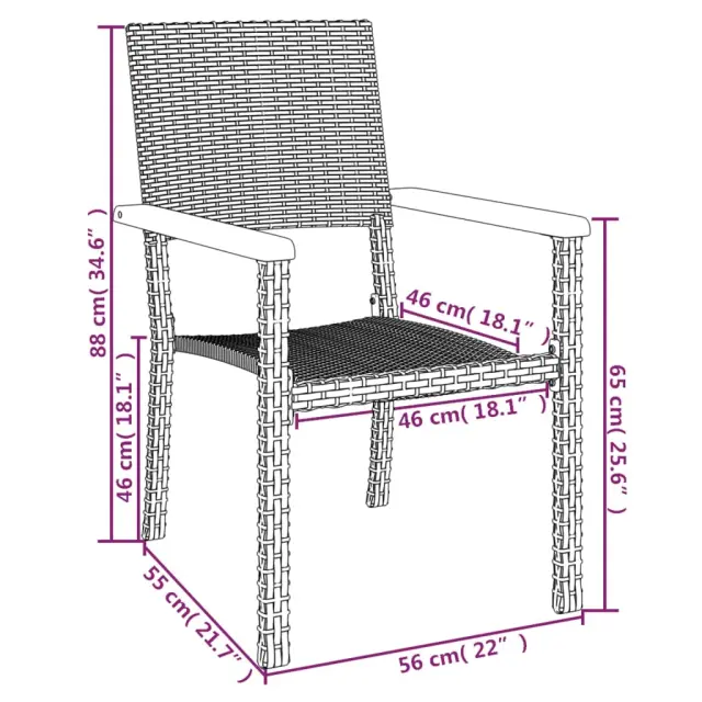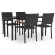 vidaXL Vrtna jedilna garnitura 5-delna črn poli ratan