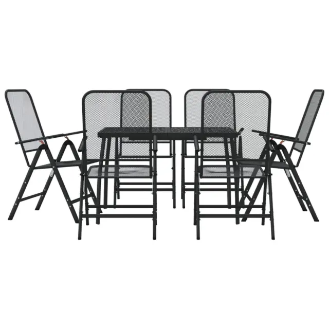 vidaXL Vrtna jedilna garnitura 7-delna antracitna kovinska mreža