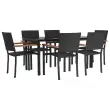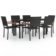 vidaXL Vrtna jedilna garnitura 7-delna črna poli ratan