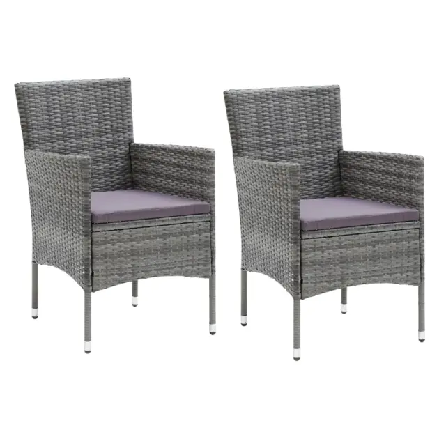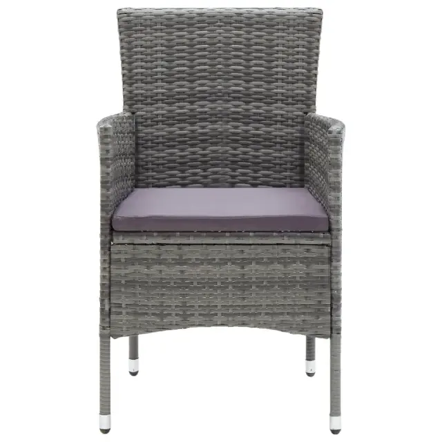vidaXL Vrtna jedilna garnitura 3-delna z blazinami siv poli ratan