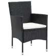 vidaXL Vrtna jedilna garnitura 3-delna z blazinami poli ratan črna