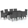 vidaXL Vrtna jedilna garnitura 9-delna z blazinami poli ratan siva
