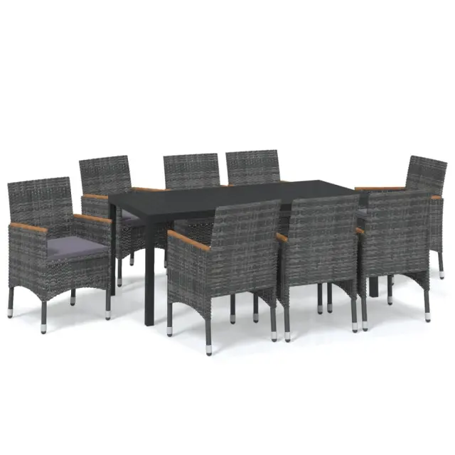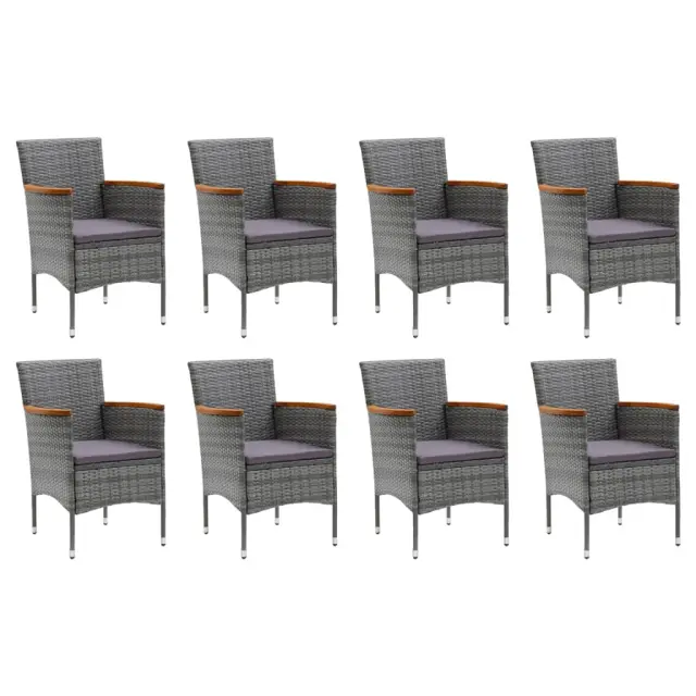 vidaXL Vrtna jedilna garnitura 9-delna z blazinami poli ratan siva