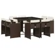 vidaXL Vrtna jedilna garnitura 9-delna z blazinami rjav poli ratan