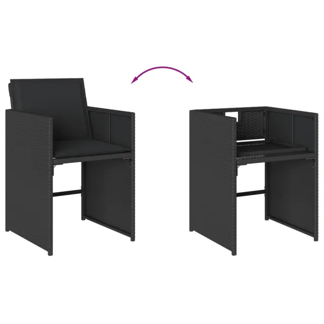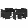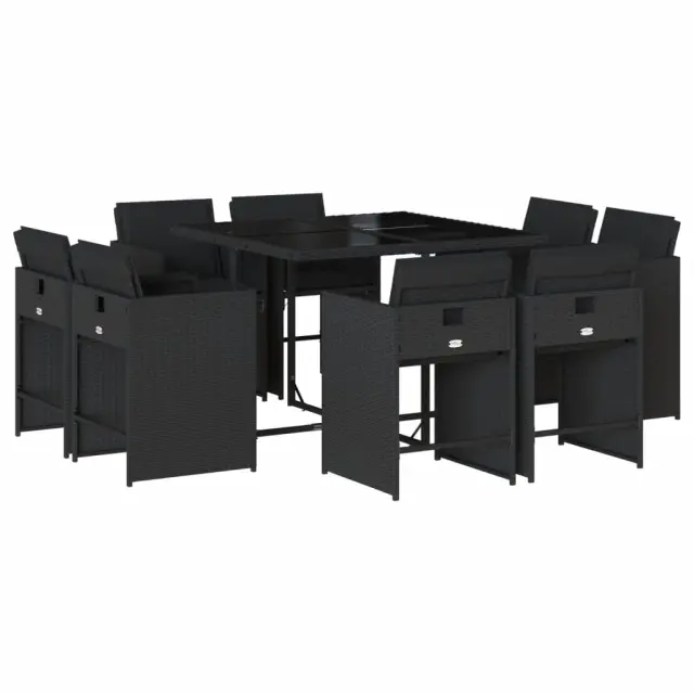 vidaXL Vrtna jedilna garnitura 9-delna z blazinami črn poli ratan