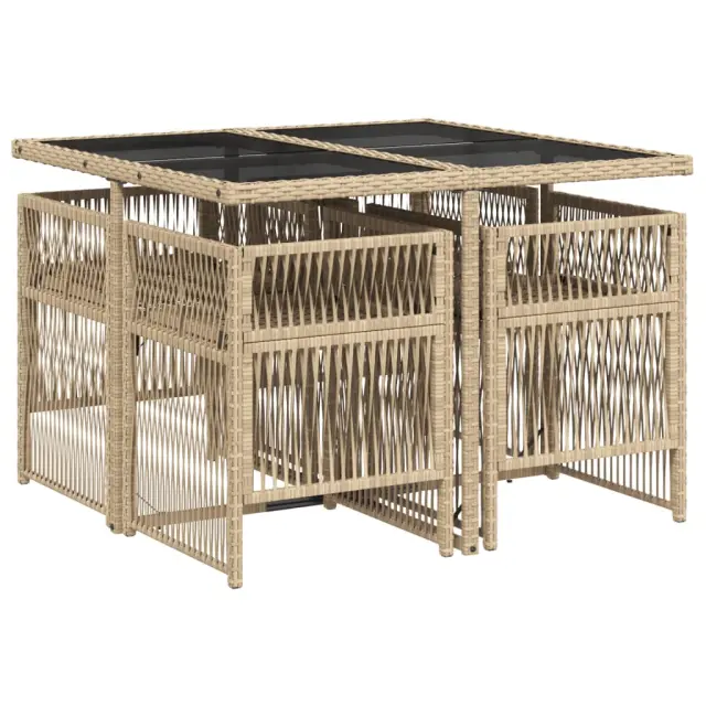 vidaXL Vrtna jedilna garnitura 5-delna z blazinami bež poli ratan