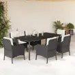 vidaXL Vrtna jedilna garnitura 7-delna z blazinami črna poli ratan