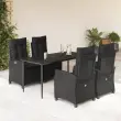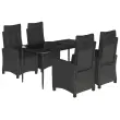 vidaXL Vrtna jedilna garnitura 5-delna z blazinami črn poli ratan