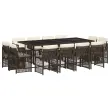 vidaXL Vrtna jedilna garnitura 13-delna z blazinami rjav poli ratan