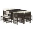vidaXL Vrtna jedilna garnitura 9-delna z blazinami rjav poli ratan