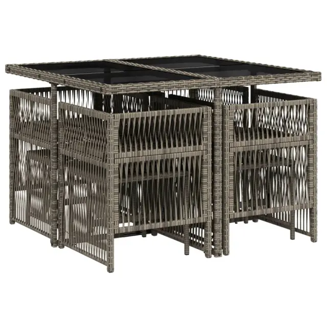 vidaXL Vrtna jedilna garnitura 9-delna z blazinami siv poli ratan