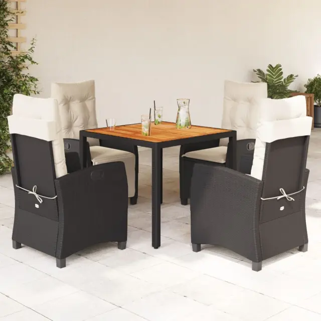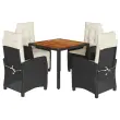 vidaXL Vrtna jedilna garnitura 5-delna z blazinami črn poli ratan