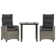 vidaXL Vrtna jedilna garnitura 3-delna z blazinami siv poli ratan