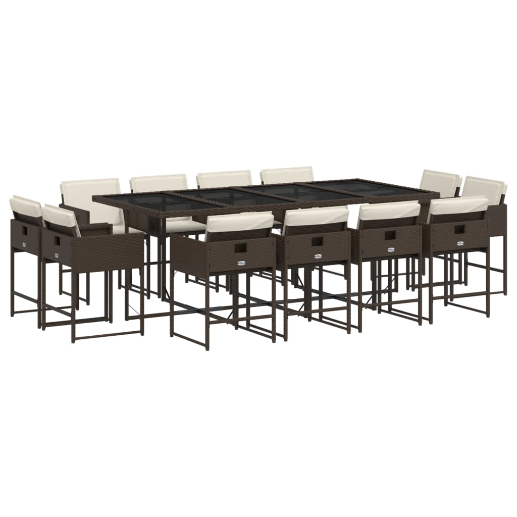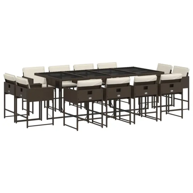 vidaXL Vrtna jedilna garnitura 13-delna z blazinami rjav poli ratan
