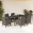 vidaXL Vrtna jedilna garnitura 7-delna z blazinami siv poli ratan