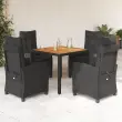 vidaXL Vrtna jedilna garnitura 5-delna z blazinami črn poli ratan