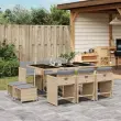 vidaXL Vrtna jedilna garnitura 11-delna z blazinami bež poli ratan