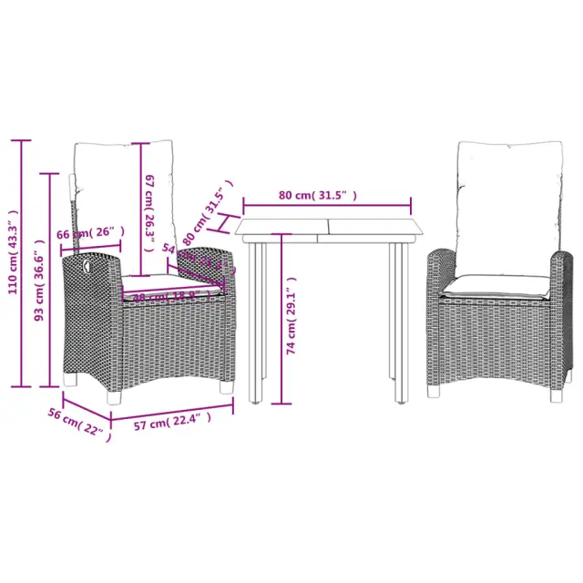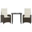 vidaXL Vrtna jedilna garnitura 3-delna z blazinami rjav poli ratan