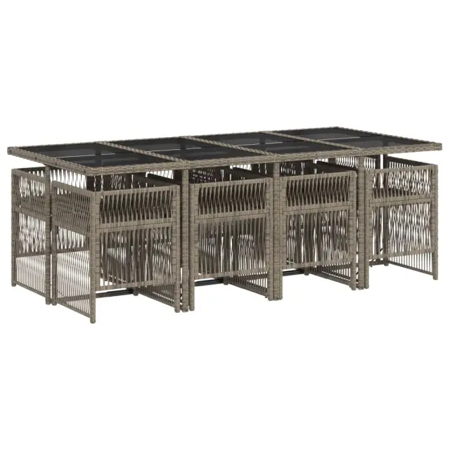vidaXL Vrtna jedilna garnitura 9-delna z blazinami siv poli ratan