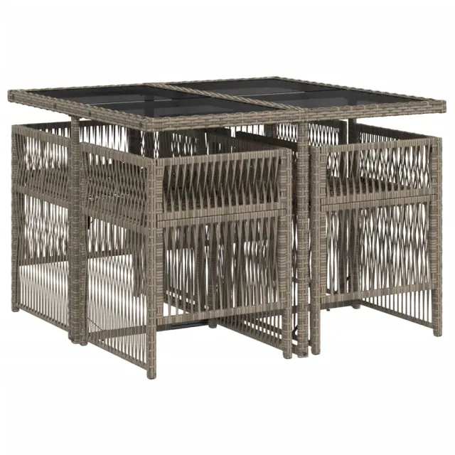 vidaXL Vrtna jedilna garnitura 5-delna z blazinami siv poli ratan
