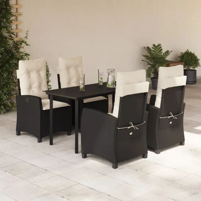 vidaXL Vrtna jedilna garnitura 5-delna z blazinami črn poli ratan