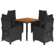 vidaXL Vrtna jedilna garnitura 5-delna z blazinami črn poli ratan