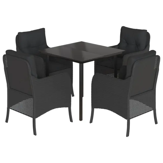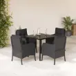 vidaXL Vrtna jedilna garnitura 5-delna z blazinami črn poli ratan