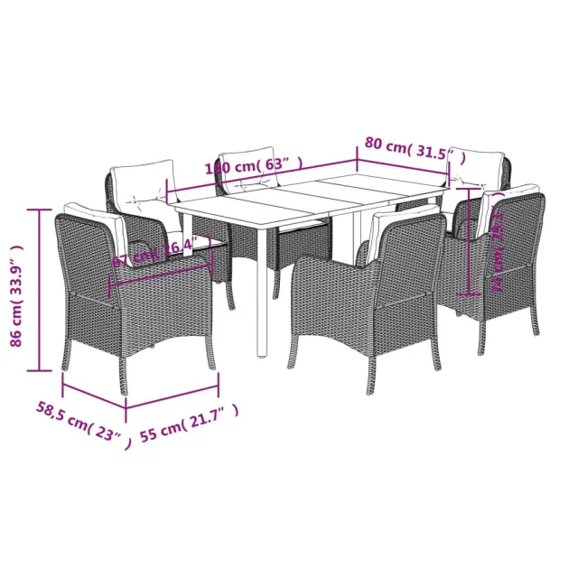 vidaXL Vrtna jedilna garnitura 7-delna z blazinami črna poli ratan
