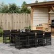 vidaXL Vrtna jedilna garnitura 9-delna z blazinami črn poli ratan
