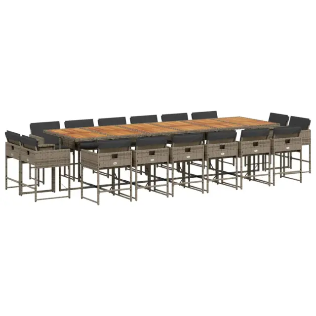 vidaXL Vrtna jedilna garnitura 17-delna z blazinami siv poli ratan
