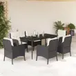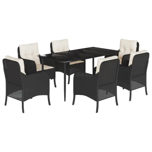 vidaXL Vrtna jedilna garnitura 7-delna z blazinami črna poli ratan