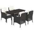 vidaXL Vrtna jedilna garnitura 5-delna z blazinami črn poli ratan