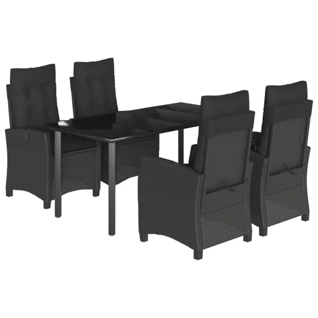 vidaXL Vrtna jedilna garnitura 5-delna z blazinami črn poli ratan