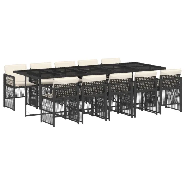 vidaXL Vrtna jedilna garnitura 11-delna z blazinami črna poli ratan