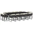 vidaXL Vrtna jedilna garnitura 15-delna z blazinami črn poli ratan