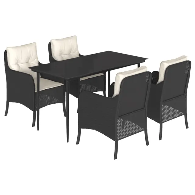 vidaXL Vrtna jedilna garnitura 5-delna z blazinami črn poli ratan