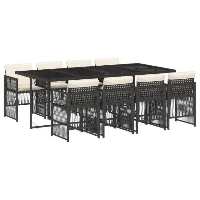 vidaXL Vrtna jedilna garnitura 9-delna z blazinami črn poli ratan