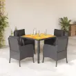 vidaXL Vrtna jedilna garnitura 5-delna z blazinami črn poli ratan