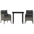 vidaXL Vrtna jedilna garnitura 3-delna z blazinami siv poli ratan